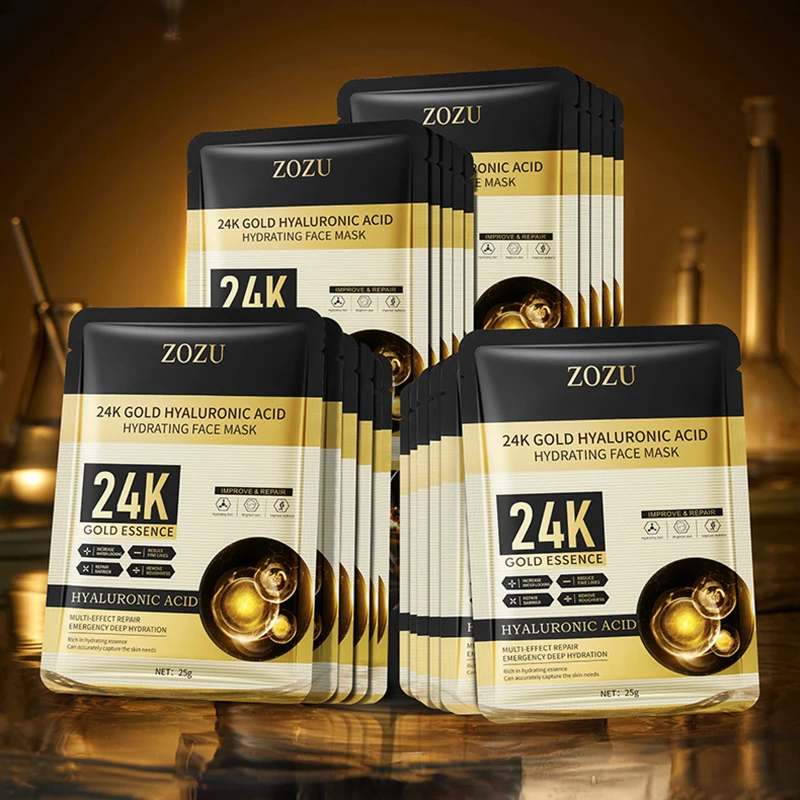 10pcs 24K Golden Hyaluronic Acid Face Mask Facial skincare Firming Moisturizing Hydrating Facial Masks Skin Care Products