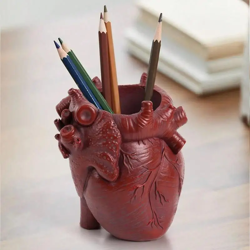 2.Expertly Crafted: The resin pen holder for desk is expertly crafted with exquisite workmanship. Its simulated heart design is meticulously detailed, creating a stunning version that is sure to enhance your work.
