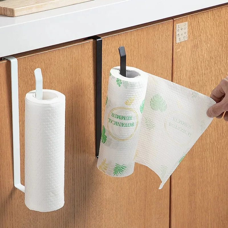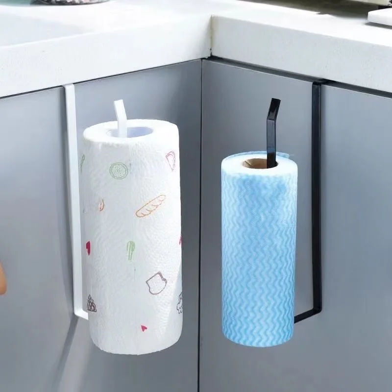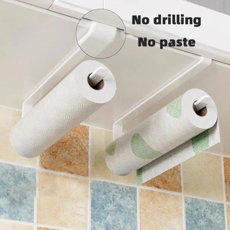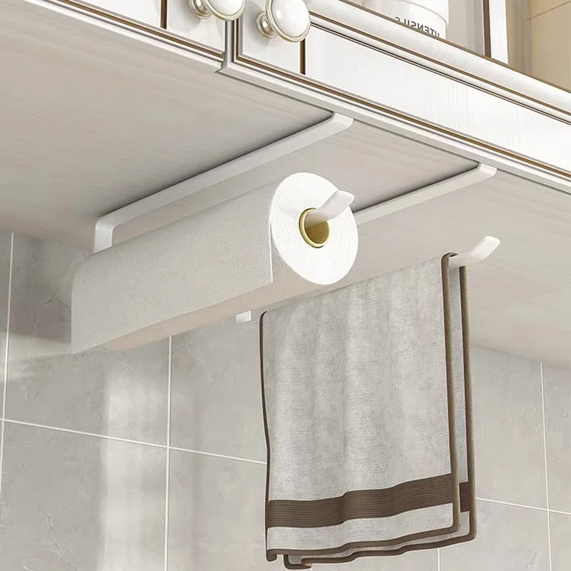 Iron Art Simple Paper roll Water Cup Towel Rack, Kitchen Cabinets Plastic Wrap Storage Rack No Installation Required