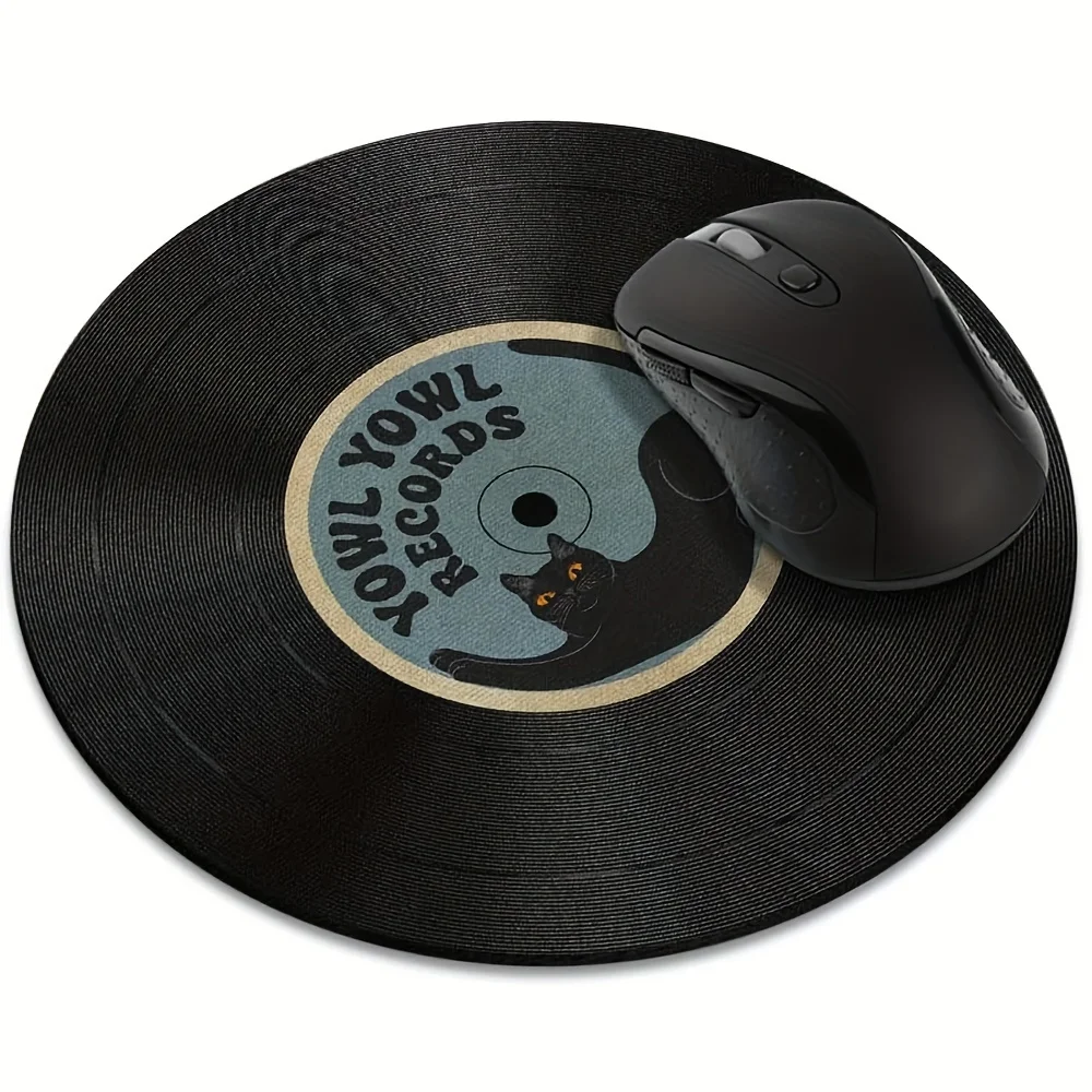 Vintage Vinyl Inspired Mouse Pad Round Non-Slip Rubber Computer Desk Mat Accessories Office Mouse Mat Playmat Rug Desk Gadgets